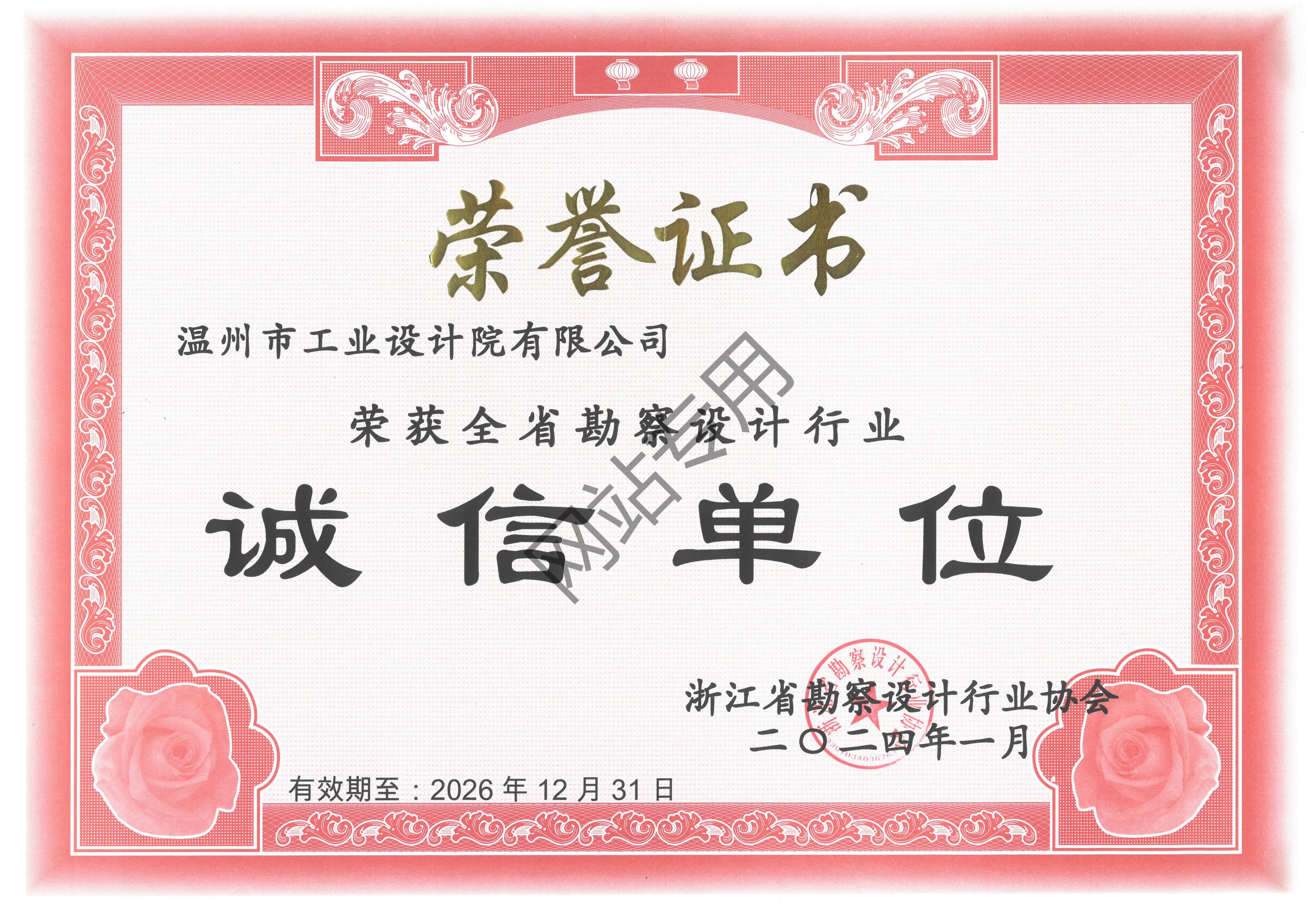 浙江省勘察設(shè)計(jì)行業(yè)誠(chéng)信單位證書(shū)2024-2026