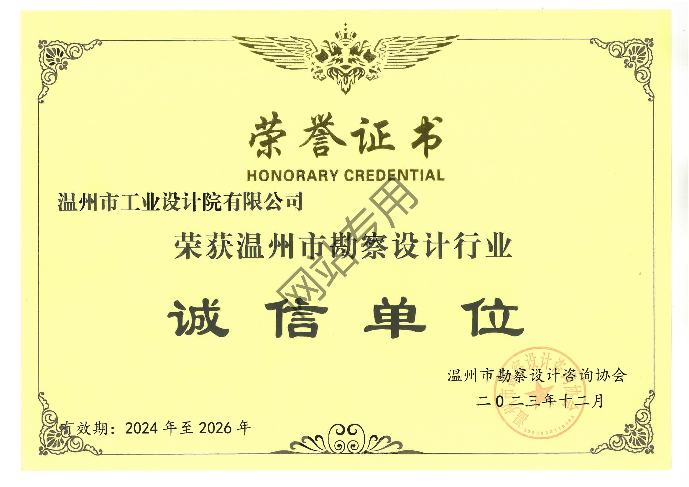 溫州市勘察設(shè)計(jì)行業(yè)誠(chéng)信單位證書(shū)2024-2026